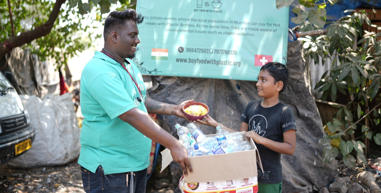Growing up in the slums of Mumbai, 20-year-old Shakti Yadav contacted us via Instagram and was determined to implement our concept there. Since 2020, we have been active in the slums of Bhandup, enabling people to exchange plastic bottles for meals and building a recycling infrastructure.